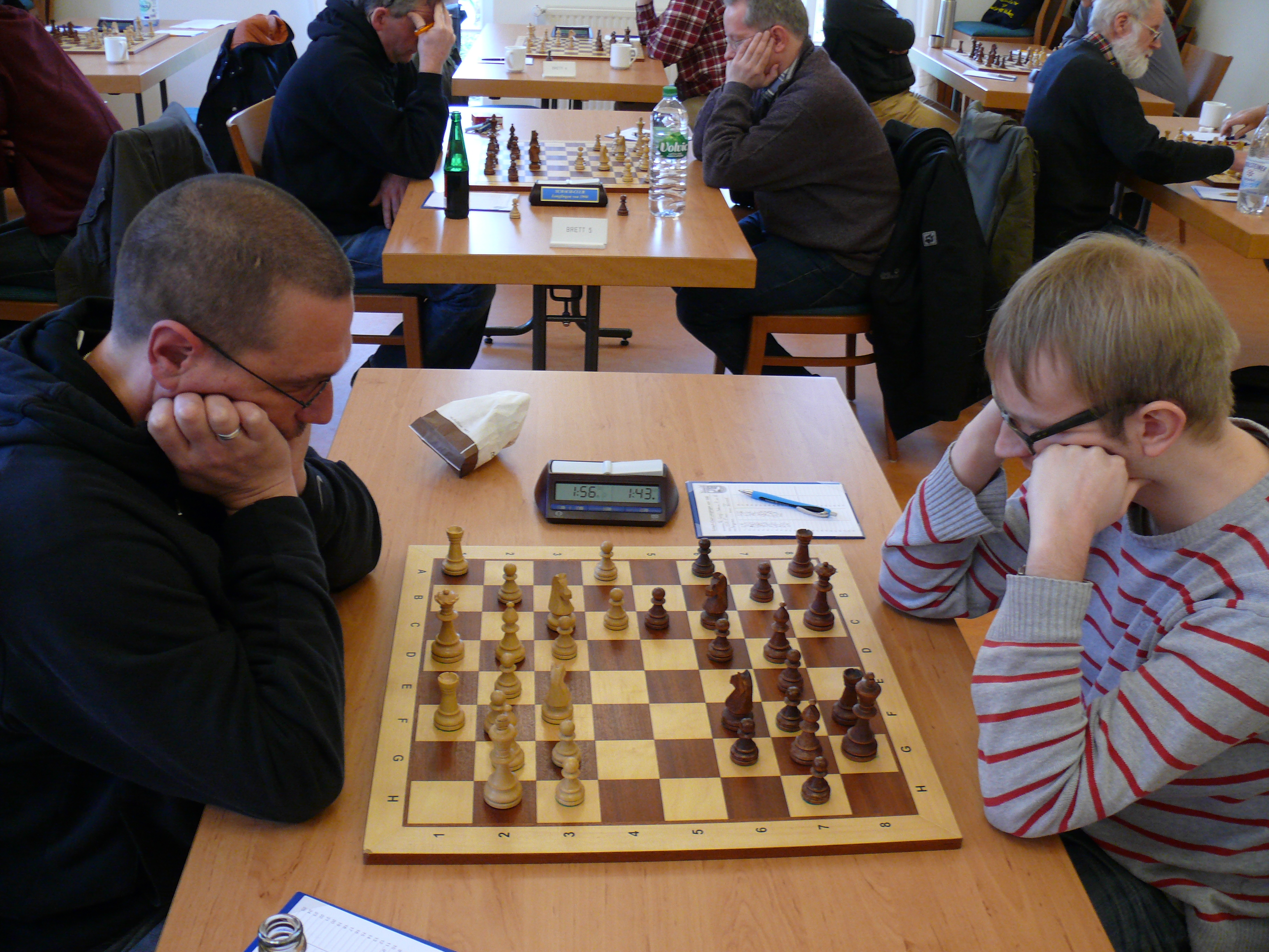 vorne Brett 2: Hans Ulrich Schatz - Bekim Morina ( 0,5 - 0,5) hinten: Brett 3: Rüdiger Hengst - Herbert Fürderer (1 - 0)
